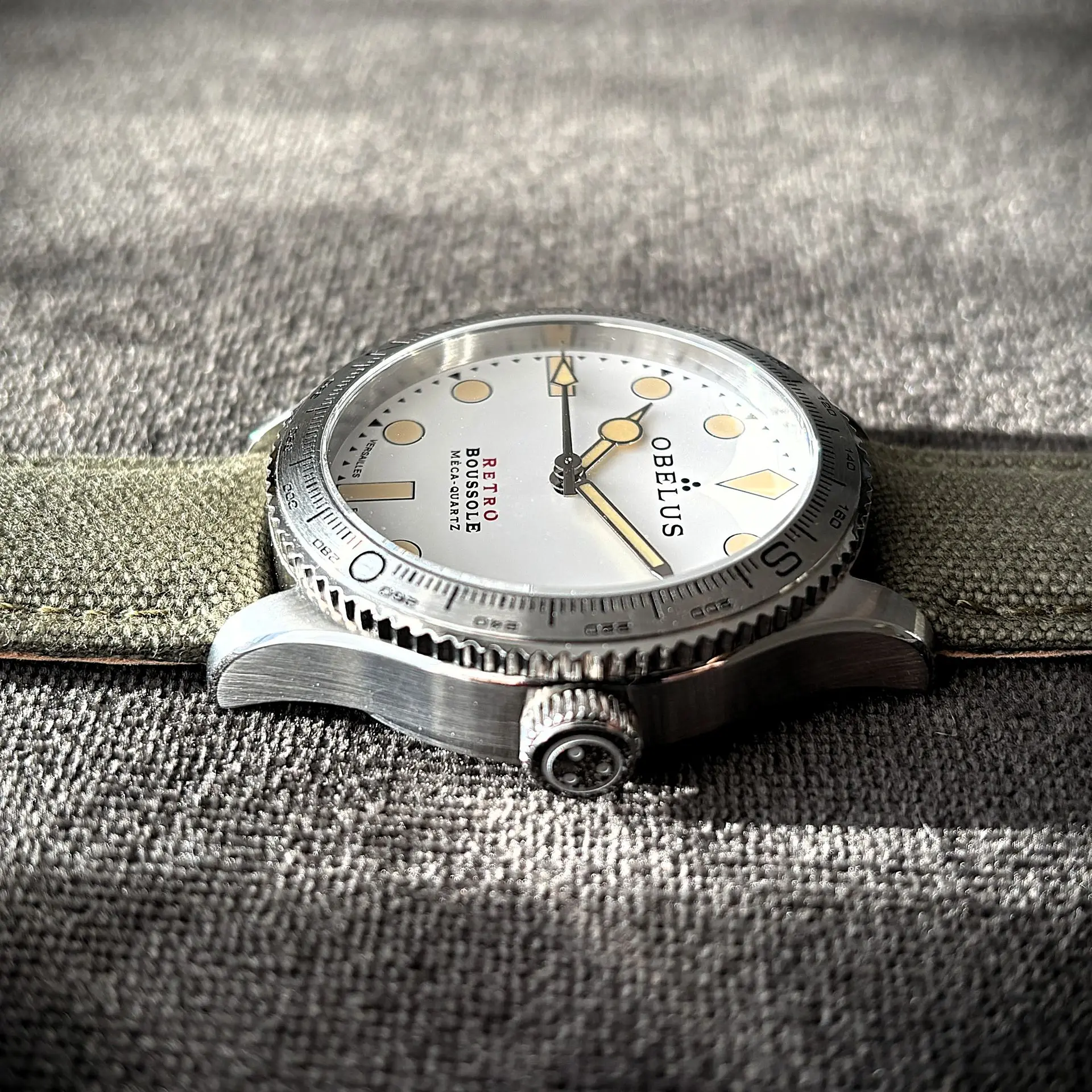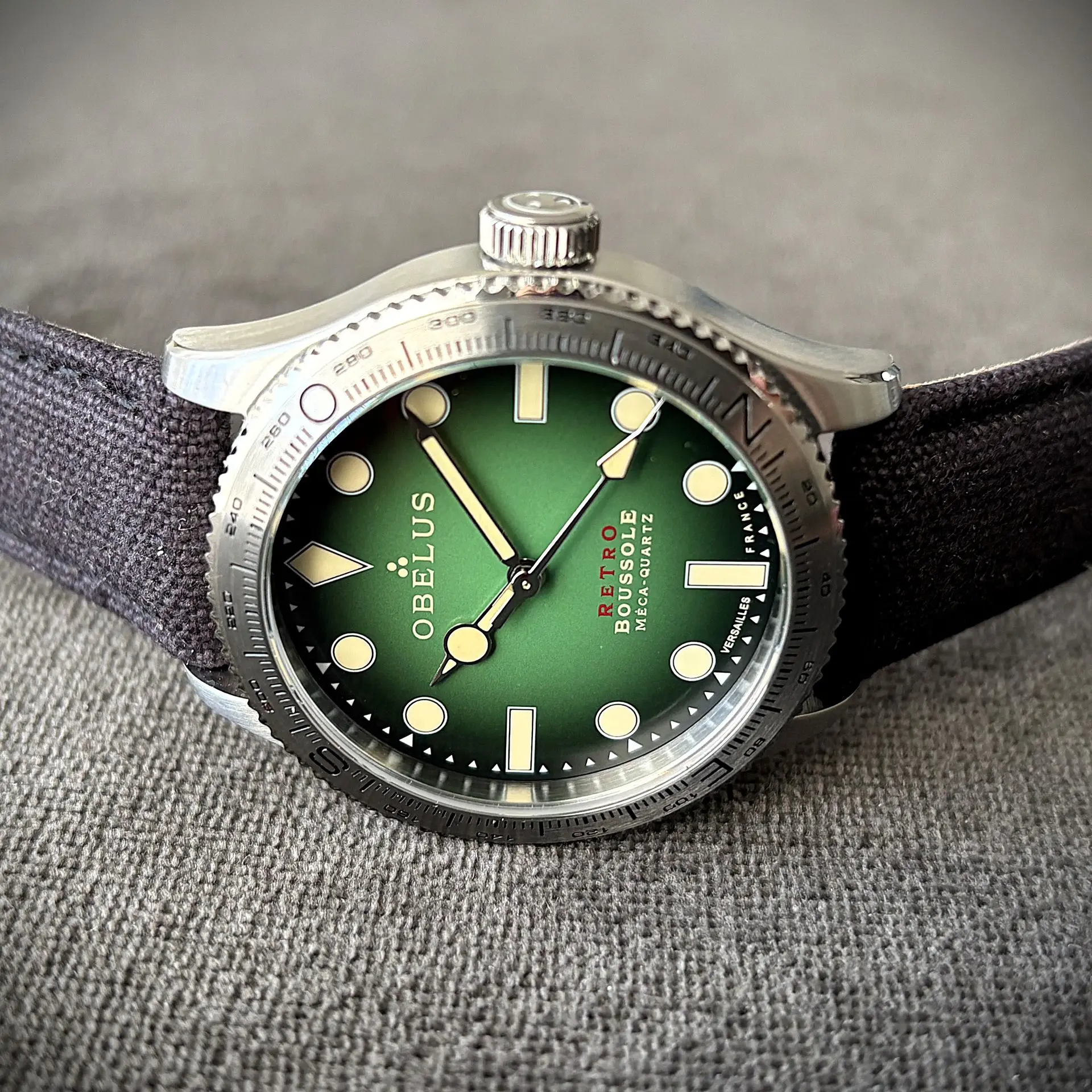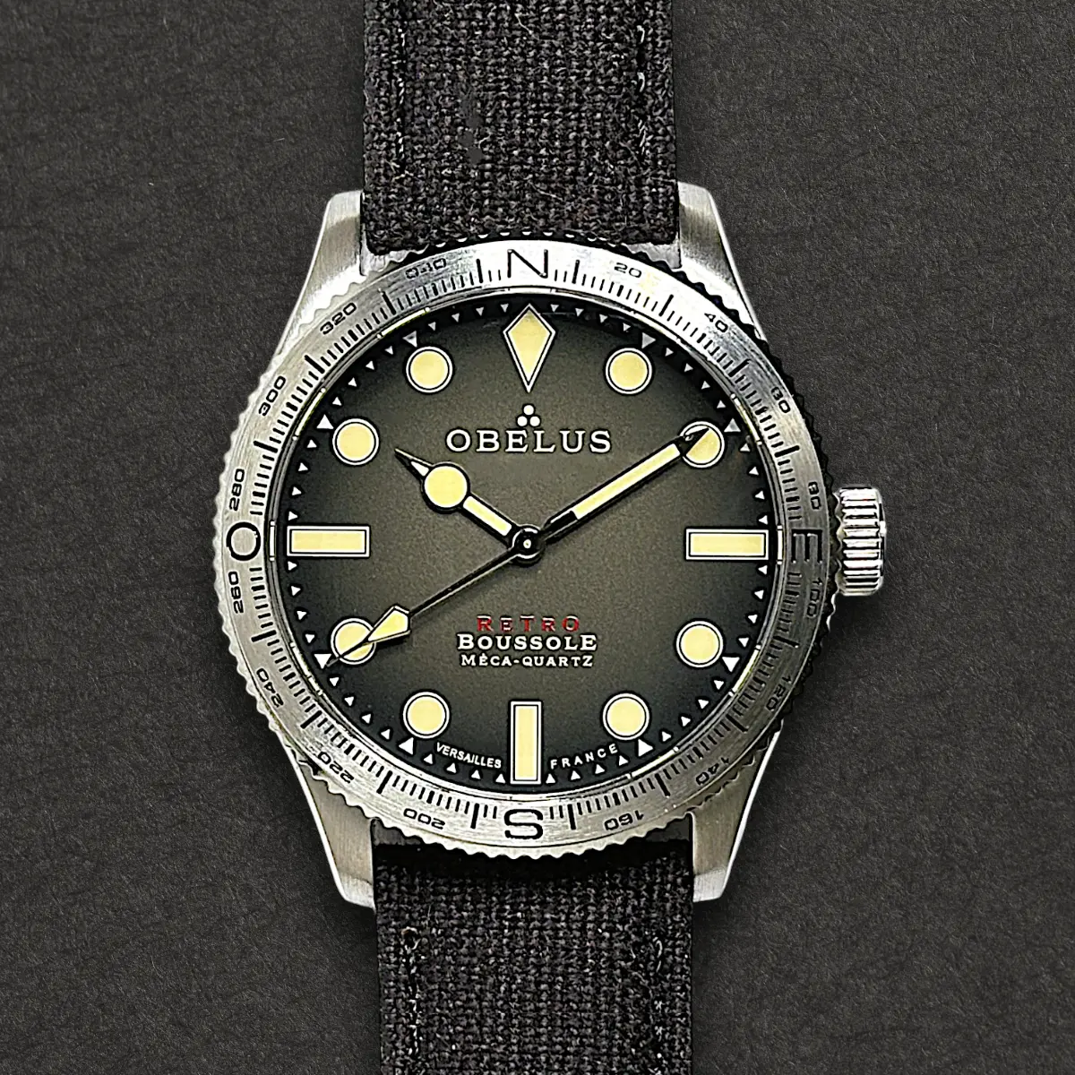 Aujourd'hui, la maison Obelus se permet de "réinterpréter" ce modèle avec ses 2 versions en 3 aiguilles, mouvement à remontage automatique, Taylor, et hybride méca-quartz avec la collection Boussole.